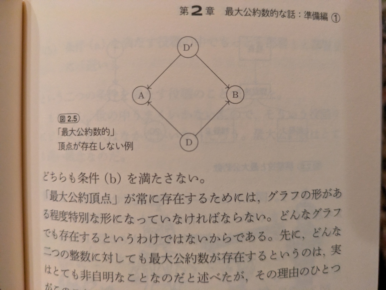 - 以上の最大公約数の定理を有向グラフに当てはめて考えると最大公約数的な頂点も同じような定理から導けることがわかる
